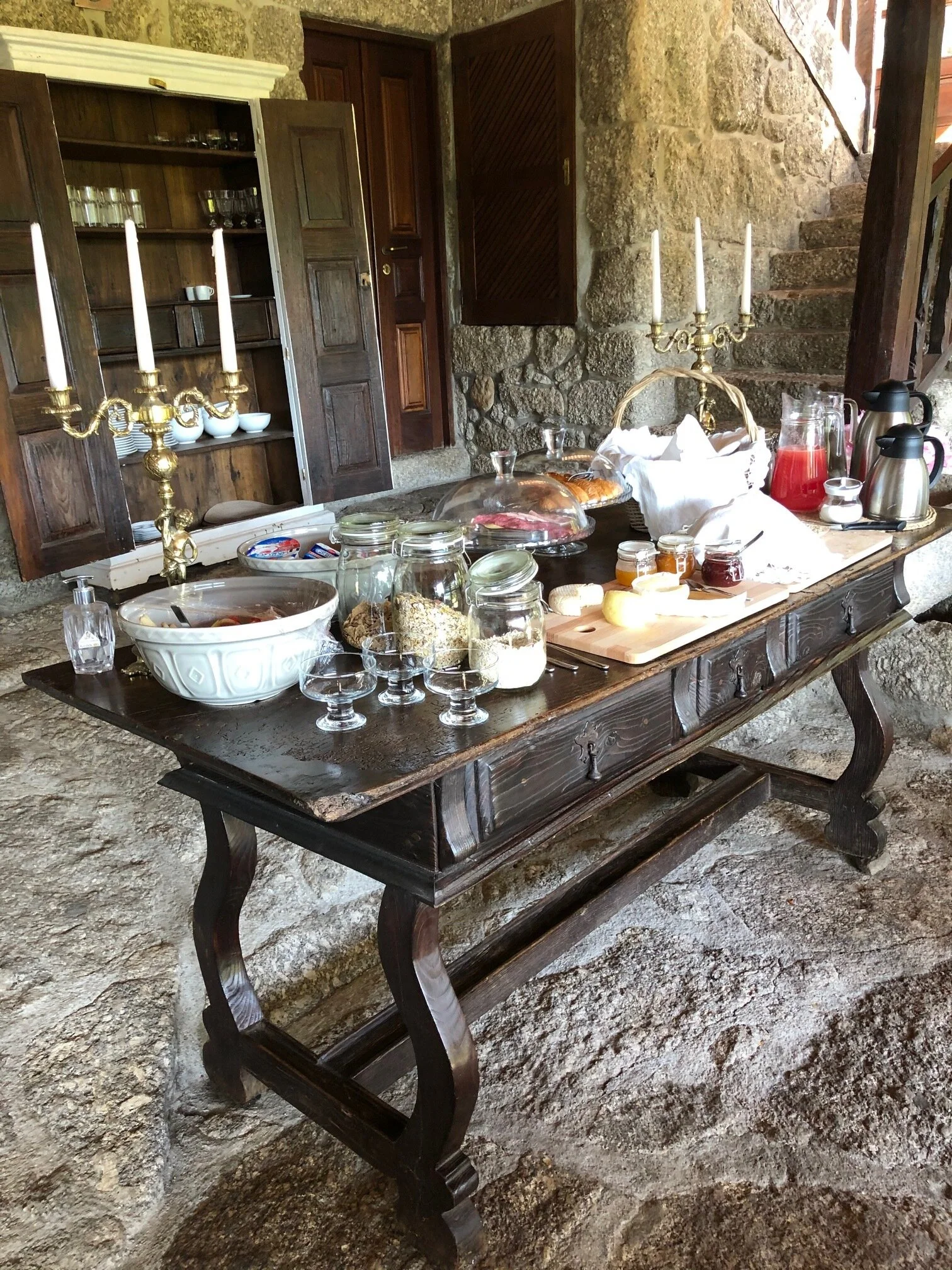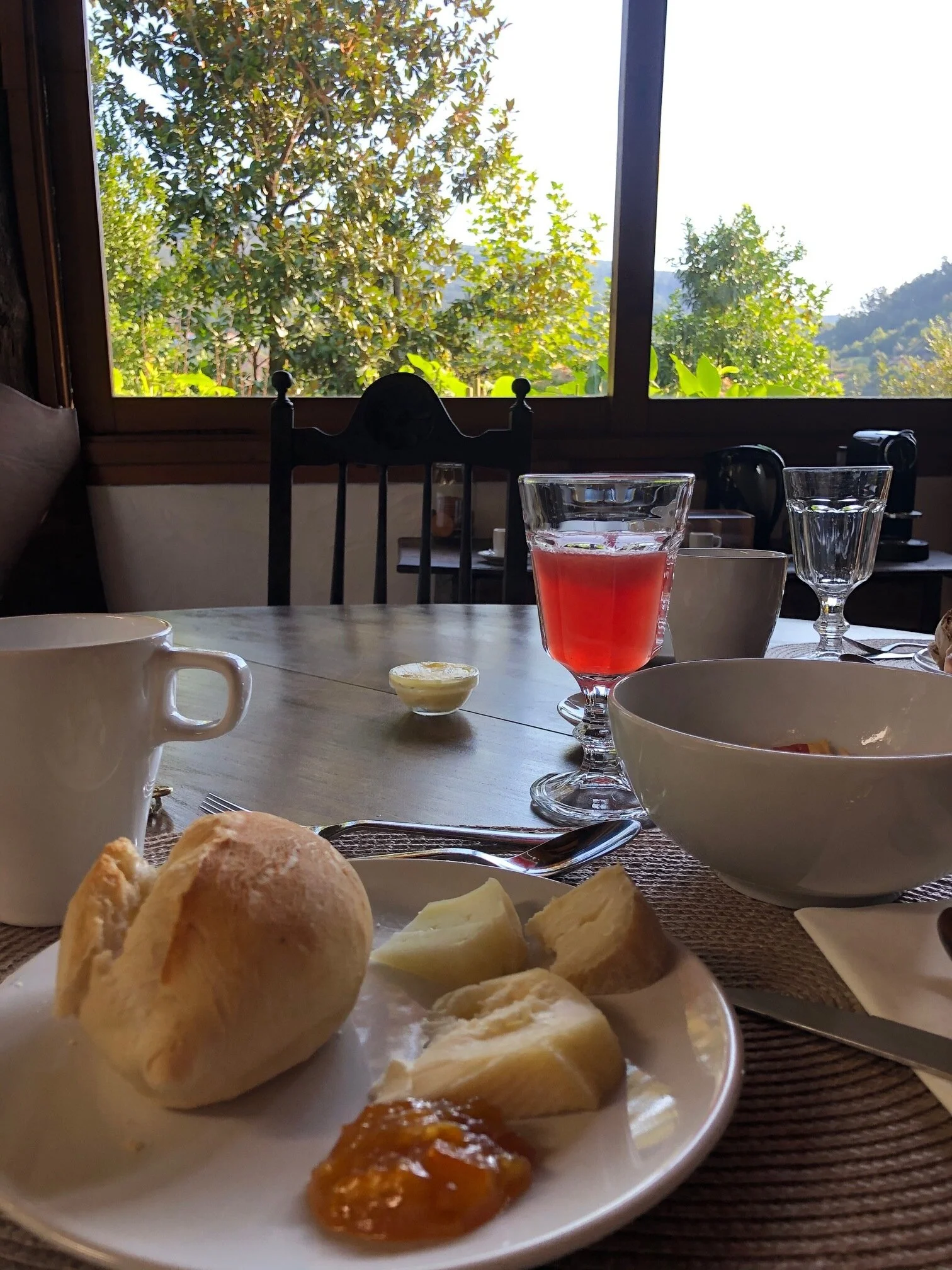 Mas a hospedagem conta com um belo café da manhã/pequeno almoço incluído, com queijos regionais deliciosos, geléias, pães, sumos caseiros, cerais, e muito mais…e claro, com uma bela vista.