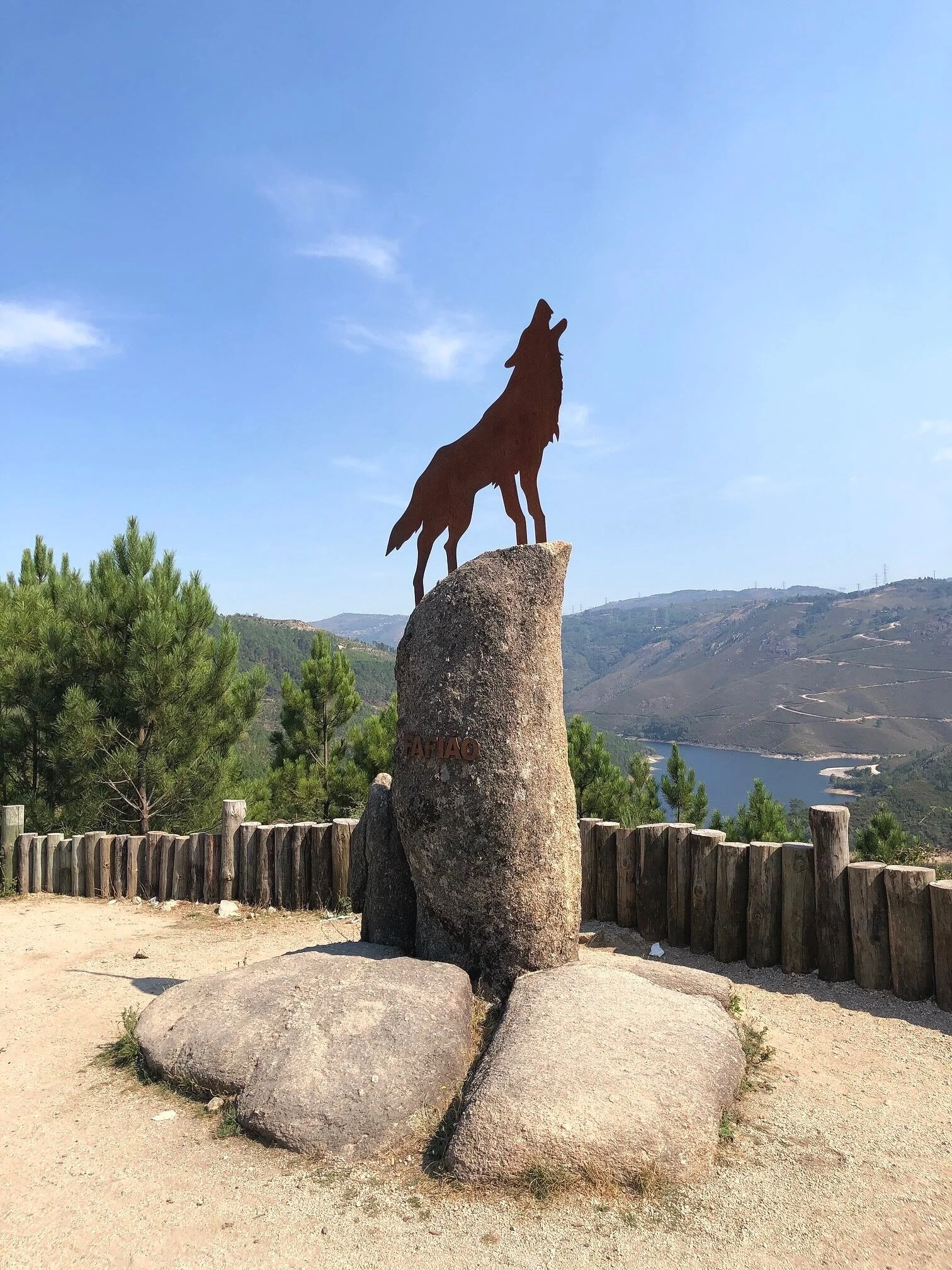Aproveite para admirar a vista logo junto a entrada da aldeia num “miradouro” com um lobo ouivando. A título de curiosidade, esta região tinha muitos lobos que atacavam o gado e, por isso, eram usadas armadilhas para pegar estes lobos. Então, os tão temidos lobos estão imortalizados na história da aldeia.