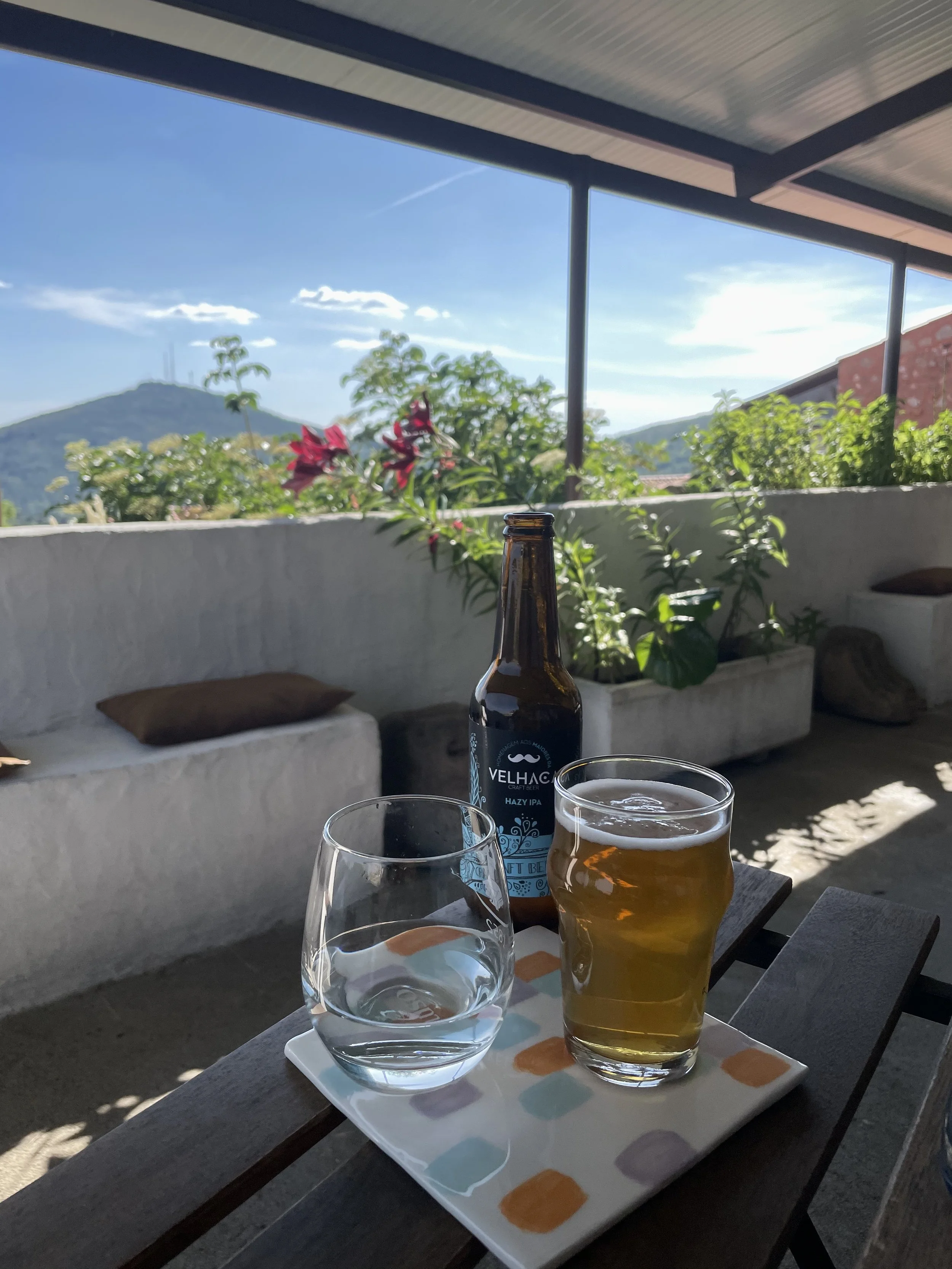 A Hopsin é uma das nossas queridinhas e, com certeza, quem acompanha o Viver Portugal no intstagram já me viu muitas vezes por lá. Fica em Colares, numa antiga estação do elétrico que vai para a Praia das Maças e tem uma das melhores esplanadas de todas, com um terraço gigante com vista para a serra de Sintra com direito ao Castelo dos Mouros e o Palácio da Pena.