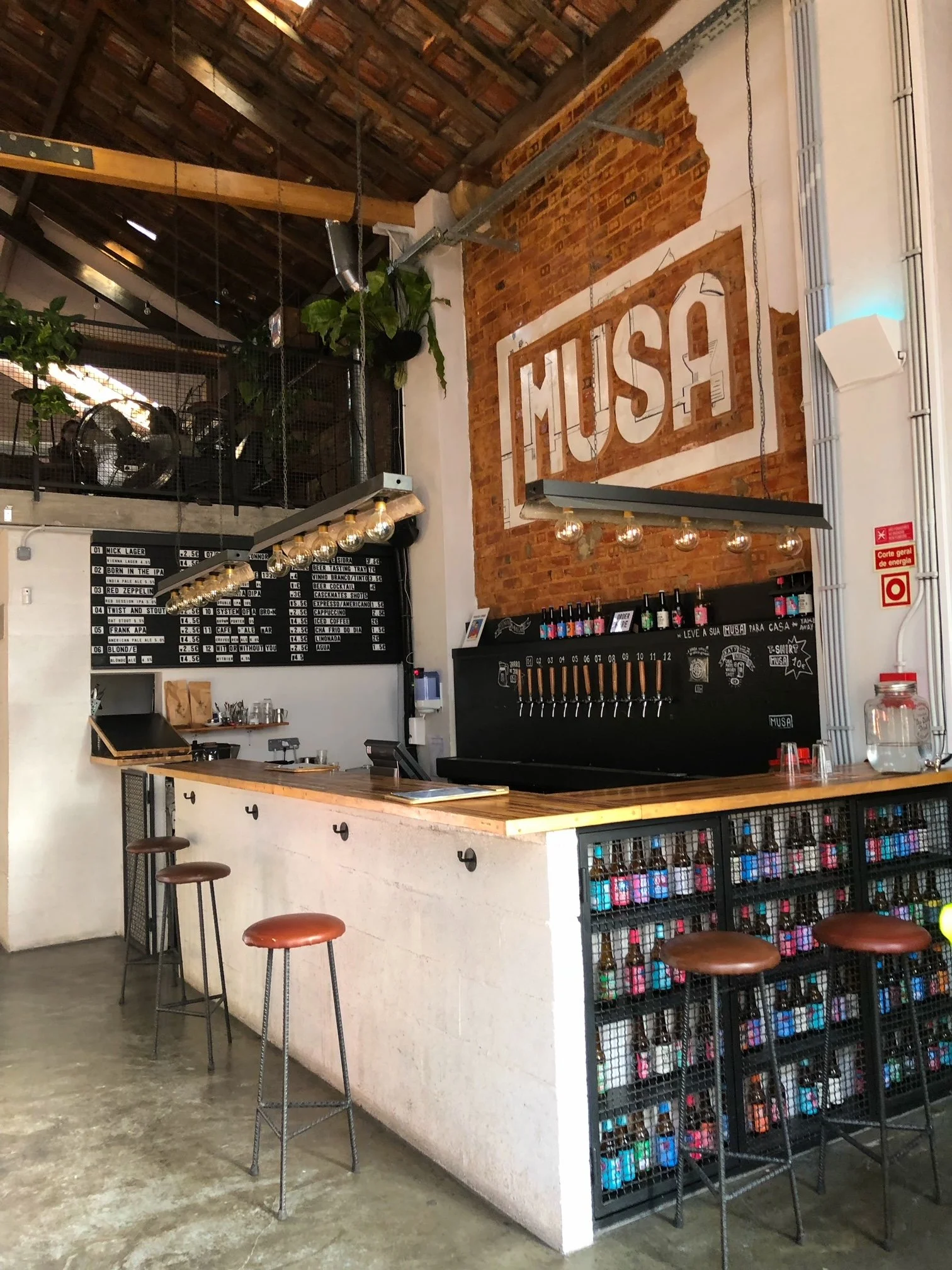 A Fábrica da Musa é minha preferida, mas não posso deixar de fora a Musa da Bica, um taproom mesmo no coração de Lisboa, juntinho ao Ascensor da Bica no Cais do Sodré. A proposta é exatamente a mesma, mas com menu de comida diferente e num ambiente menor.